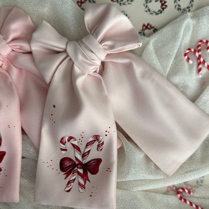 O colecție dulce și jucăușă, unde fiecare fundiță aduce farmecul bomboanelor de Crăciun și magia iernii în nuanțe de roșu și alb.Descoperă o colecție unică de fundițe de păr, lucrate manual cu grijă și pictate cu pasiune. Fiecare piesă este o mică operă de artă, realizată cu atenție la detalii și gândită să aducă un strop de culoare, eleganță și personalitate în orice ținută.