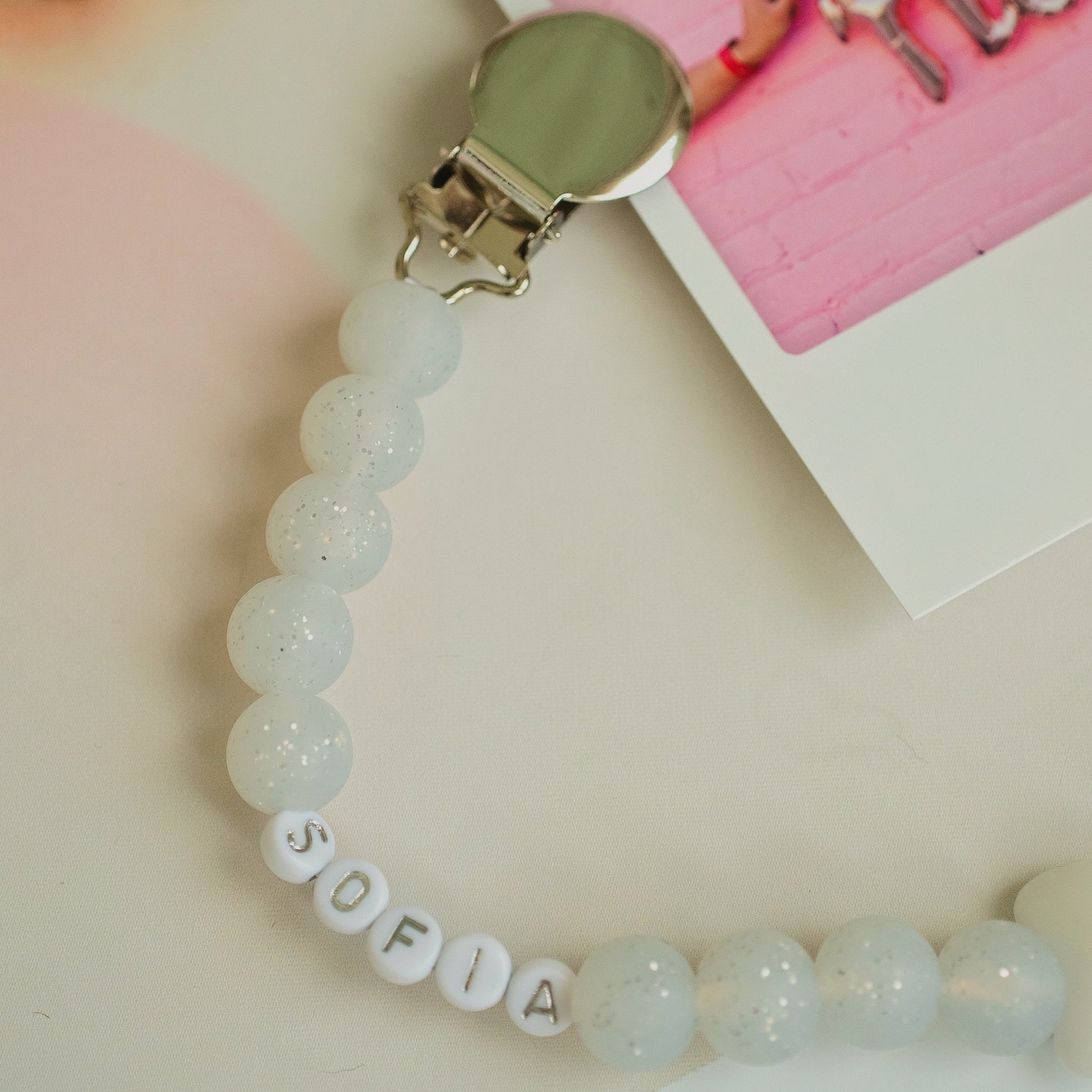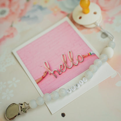 Lanțișorul se poate spăla cu apă călduță și săpun delicat sau se poate șterge cu o cârpă umedă. Clipsul nu este recomandat să intre în contact cu apa, deoarece poate rugini. De asemenea, nu trebuie introdus în guriță de către bebeluși.