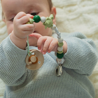 Lănțișorul „Made with Heart” este mai mult decât un simplu accesoriu care ține suzeta, este mica bijuterie delicată a bebelușului tău, care adaugă un strop de farmec oricărei ținute!