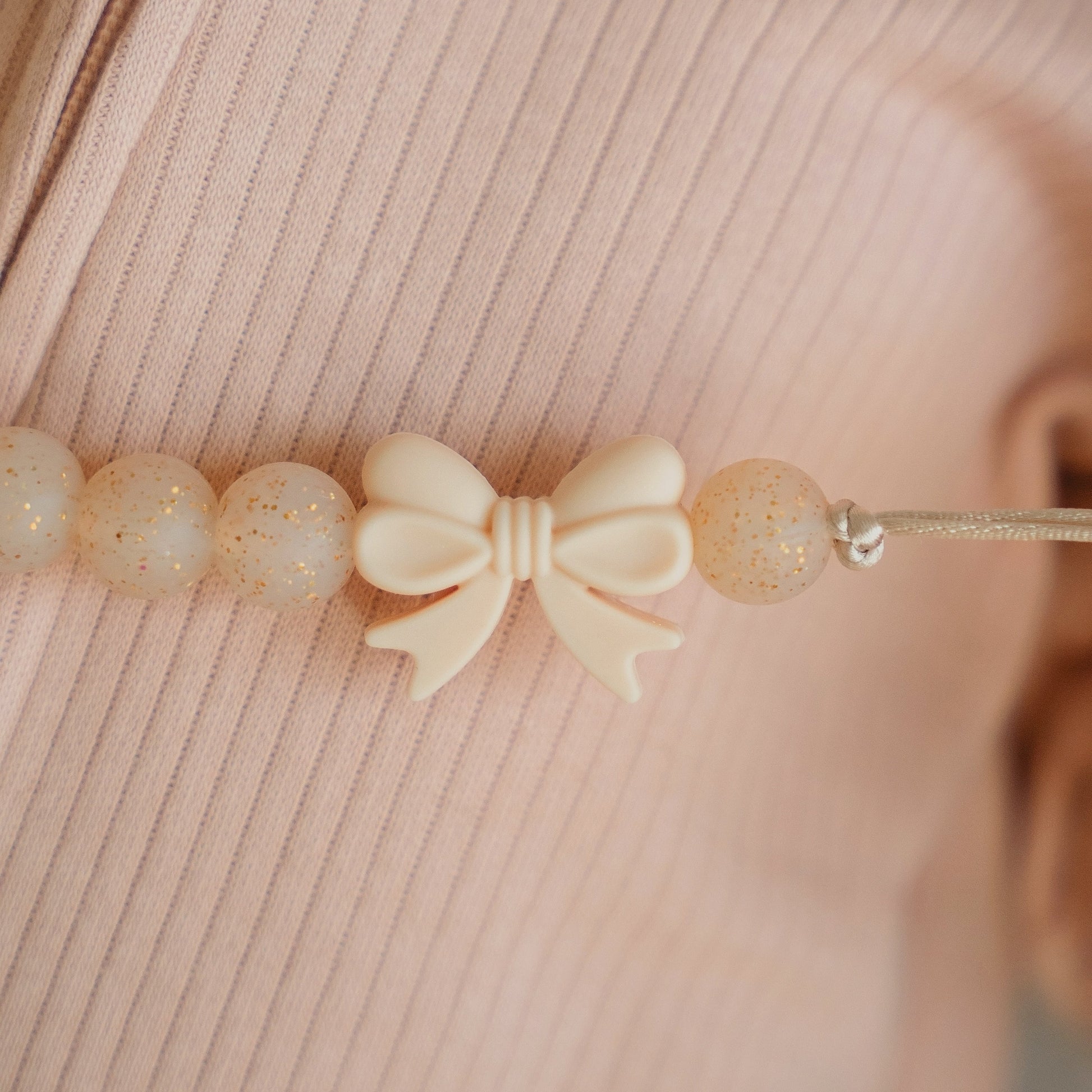 Lănțișorul „Made with Heart” este mai mult decât un simplu accesoriu care ține suzeta, este mica bijuterie delicată a bebelușului tău, care adaugă un strop de farmec oricărei ținute!